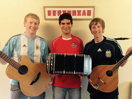 An opportunity worth seizing upon. A chance meeting with Alejandro Jones from Trevelin in 2014 resulted in another trans-atlantic collaboration during July. This time, with another set of brothers, El Surco Duo - Alejandro and Leonardo Jones, from the Andes. The collaboration is a Welsh version of their popular song ‘Aquí’.
