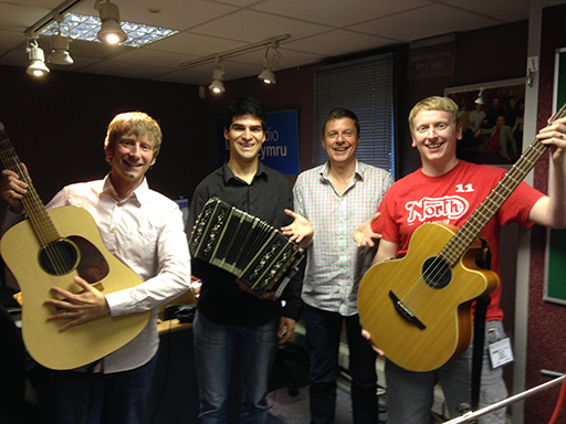 A live performance on Dylan Jones' Breakfast Show on BBC Radio Cymru before a journey to Llanuwchllyn.
